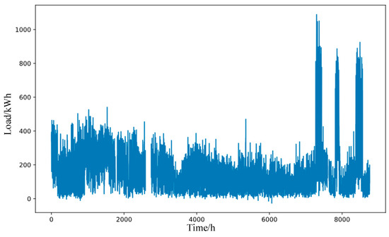 The model underwent training utilizing a comprehensive set of hourly electricity consumption data from battery swap stations located in a city within Northeast China [19]. The data cover the span from 1 March 2022, to 1 March 2023, capturing a full year’s worth of hourly readings. Concurrently, the training process integrated actual meteorological data sourced from the city’s weather stations over the identical timeframe. The rationale behind opting for a year-long dataset lies in the pronounced climatic variations characteristic of Northeast China. A one-year time span ensures the model accounts for the full spectrum of load changes from spring through to winter, enhancing the robustness of the training process.