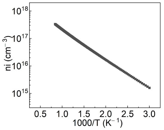 For the SiC, the semiempirical formula for the variation in the intrinsic carrier concentration with temperature is as follows:
