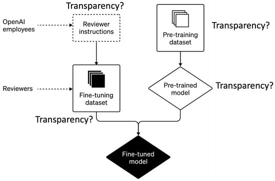 - Self-reference (AI-based) monitoring—AI systems that rely solely on themselves for evaluation, without independent oversight, can lead to a lack of accountability and decreased transparency in decision-making. As shown in Figure 4, ChatGPT uses both supervised and unsupervised learning to train the model. OpenAI did not open much information on how ChatGPT is evaluated and monitored despite the use of the self-reference approach commonly used in the community.