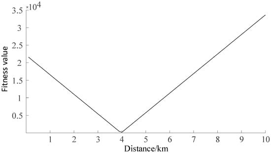 Figure 21 shows that when the fault distance is 4 km, its fitness value is the smallest, and this fitness function can effectively resist the influence of measurement errors.