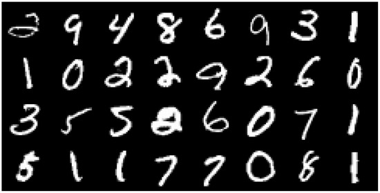 MNIST: The MNIST dataset consists of 70,000 images of 10 different handwritten digit classes, including 60,000 training images with corresponding labels and 10,000 test images with labels. Each image is 28 × 28 pixels in size. Figure 5 shows some real data from the MNIST dataset.
