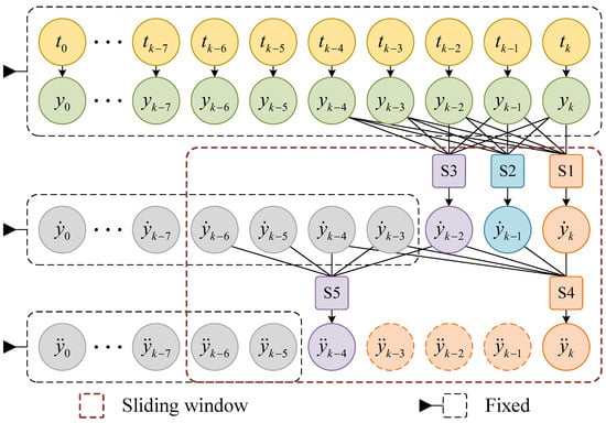 Five-point interpolation-derivative model based on sliding window for CPG model. S1 and S4 represent that they are not fixed after calculation using Equations (40) and (45), respectively. S2 represents that they are not fixed after calculation using Equation (39). S3 and S5 represent that they are fixed after calculation using Equations (38) and (43), respectively.