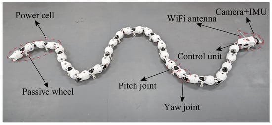 - Ni, F.; Li, Y.; Zhou, Y.; Zhao, L.; Liu, H. Design of a Hierarchical Control System for Tetherless Snake Robot. In Proceedings of the 2019 IEEE International Conference on Mechatronics and Automation (ICMA), Tianjin, China, 4–7 August 2019; IEEE: Piscataway, NJ, USA, 2019; pp. 1254–1259. [Google Scholar]