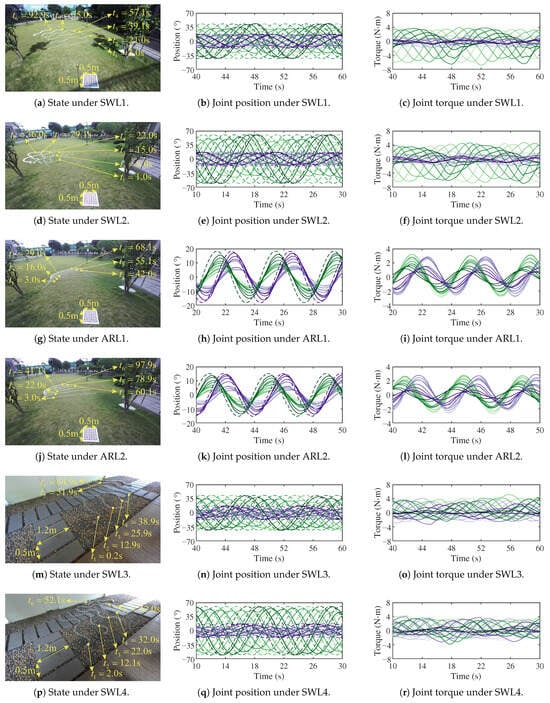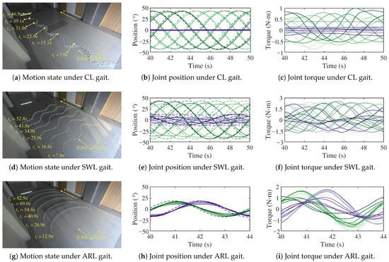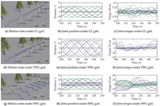 where Equations (25)–(27) are used to achieve CL, TWL, and SWL gaits, respectively.