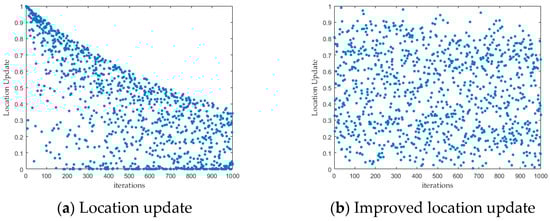 In the pursuit of a globally optimal solution, our algorithm effectively leverages the optimal individuals to enhance local search optimization. This is achieved through a series of meticulously designed optimization operations, ensuring a thorough exploration of the optimal solution within a constrained search space. Simultaneously, other individuals in the algorithm dynamically update the set of optimal individuals by adjusting their positions based on assigned weights. This mechanism not only maintains the breadth of the population’s search range but also significantly enhances the capability to identify the global optimum. As illustrated in Figure 3, this updating strategy successfully broadens the search horizon while preserving detailed exploration within the optimal region.