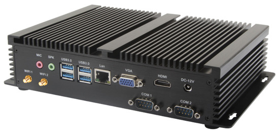The robot software system operating within the operating system layer serves three primary functions: First, it receives instructions from the host computer and executes the corresponding actions promptly. Second, it processes feedback from the driver layer, overseeing the control of the mobile robot’s movements and monitoring its current state. Third, it utilizes LiDAR data to construct an environmental map. Compared to units like the Raspberry Pi, an Industrial PC (IPC) offers superior computational speed, multi-threading capabilities, and enhanced image processing. Consequently, the main controller for this system is the Jimmei GK3000 industrial controller, which is equipped with the Ubuntu operating system and ROS Kinetic version. The manufacturer is China’s Shenzhen XDTech Electronics Co. The physical layout is illustrated in Figure 16, with performance specifications detailed in Table 8.