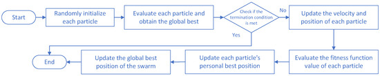 In PSO, the algorithm is initialized with a group of random particles (random solutions). Then, the optimal solution is found through iteration. In each iteration, particles update themselves by tracking two “extremes” (pbest and gbest). After finding these two optimal values, particles update their velocity and position using the following formula.