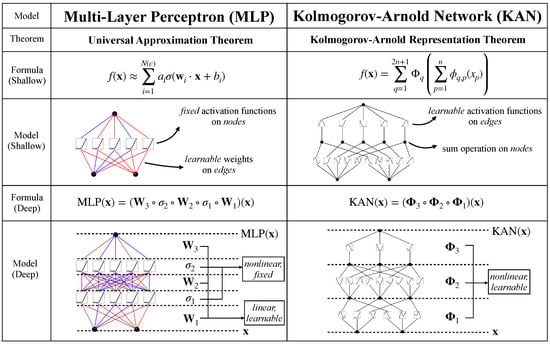 - Liu, Z.; Wang, Y.; Vaidya, S.; Ruehle, F.; Halverson, J.; Soljačić, M.; Hou, T.Y.; Tegmark, M. KAN: Kolmogorov-Arnold Networks. arXiv 2024, arXiv:2404.19756. [Google Scholar]