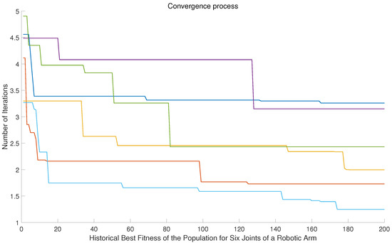 Given the spatial coordinates of the robot’s starting point, two path points, and the endpoint in the Cartesian coordinate system, the joint angles at four interpolation points are solved using inverse kinematics, denoted by , where represents the number of joints and represents the indices of the four interpolation points.