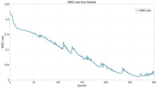 Initially, the trajectory of MSE indicates the model’s rapid learning capability at the early stages, with MSE quickly dropping from approximately 0.25 to around 0.15. This significant reduction signifies that the model effectively captures the basic patterns and relationships within the data. As training progresses, MSE continues to slowly decrease and finally stabilizes around 0.019 by the 300th epoch. This trend suggests that the model gradually adapts to the complexity of the data, reducing prediction errors through internal parameter adjustments and demonstrating good generalization ability.