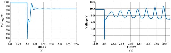 The voltage curve of the junction points under conditions of oscillation convergence. (a) Voltage of junction point under oscillatory convergence condition; (b) voltage of junction point under oscillating divergence condition.