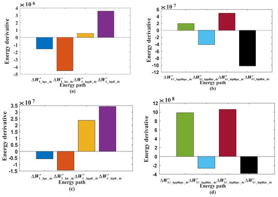 The energy derivatives and changing trends of aperiodic energies of the current inner loop, phase-locked loop, and current inner loop–phase-locked loop interaction are shown in Figure 6 and Figure 7.