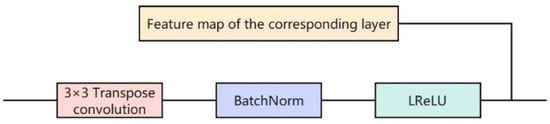 The 3 × 3 transpose convolution operates by convolving the input feature map with a transpose convolution kernel, allowing for the enlargement of low-resolution feature maps to higher resolutions, thus restoring spatial details lost during downsampling. Batch normalization, employed in the upsampling blocks, primarily normalizes the feature maps across each batch, standardizing the numerical range of the feature maps and enhancing the model’s generalization capability. LReLU (Leaky ReLU) serves as a rectified linear unit activation function, introducing non-linearity to enable the network to learn more complex feature representations while maintaining computational efficiency. Compared to traditional ReLU, LReLU introduces a small negative slope in the negative region to mitigate the “dying neuron” phenomenon.
