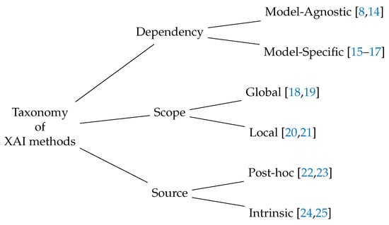 Taxonomy of XAI methods [8,13,14,15,16,17,18,19,20,21,22,23,24,25].