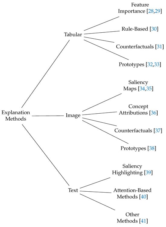 Categorization of XAI methods by data type [27,28,29,30,31,32,33,34,35,36,37,38,39,40,41].
