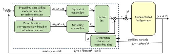 Figure 1 shows the block diagram of the anti-disturbance control system of a bridge crane with prescribed-time positioning and anti-swing.