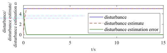 Trajectories of constant disturbance, disturbance estimate, and disturbance estimation error over time.