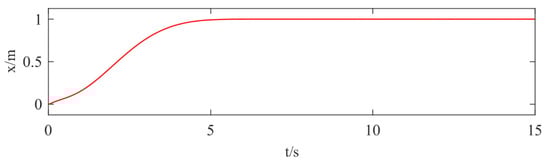 Under the condition of time-varying disturbance during the working process of the bridge crane, the simulation results in Figure 10 show that the designed prescribed-time disturbance observer makes an accurate estimation of the disturbance at 0.31 s, and the estimation error is stabilized at zero, so it can be verified that the designed disturbance observer can make an accurate estimation of the time-varying disturbance of the bridge crane within the specified time . The simulation results in Figure 11, Figure 12 and Figure 13 show that the bridge crane is still able to realize accurate positioning of the trolley and fast material swing angle elimination at the prescribed time s even when it is subjected to time-varying disturbance.