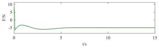 The simulation experimental results in Figure 9 show that the initial value of the control law is 9.28 N, and after 6 s due to the existence of the external constant-value disturbance, the control algorithm makes an accurate compensation for the external disturbance, so the control law is stabilized at −5 N.