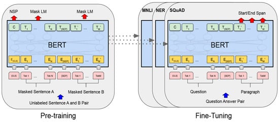 - Devlin, J.; Chang, M.; Lee, K.; Toutanova, K. BERT: Pre-training of Deep Bidirectional Transformers for Language Understanding. In Proceedings of the Proceedings of the 2019 North American Chapter of the Association for Computational Linguistics, Minneapolis, MN, USA, 2–7 June 2019. [Google Scholar]