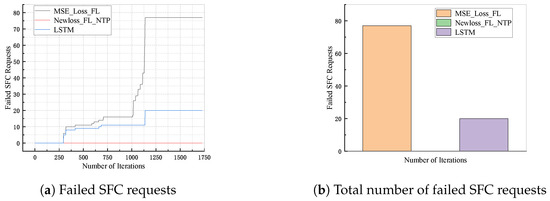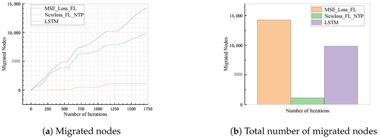 - Optimized loss function: In the Newloss_FL_NTP algorithm, the loss function is redesigned to include the results of network migration in the calculation of the loss function, which allows the migration of the network to feed back into the training of the prediction model. The loss function includes factors such as the difference between the predicted and actual network traffic, node migration, migration failure, and energy consumption.