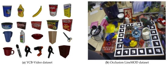 As shown in Figure 6, 21 different objects from the YCB-Video dataset [14] and images from the Occlusion LineMOD dataset are utilized in the experiment.