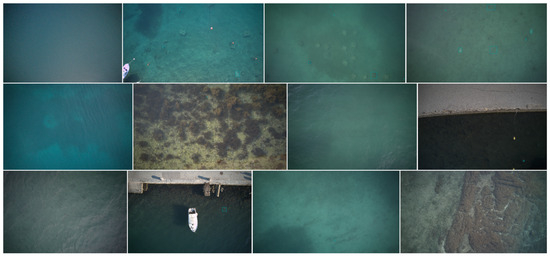 Nine preprocessing methods that can improve image quality were selected. CLAHE, ICM, ULAP, GC, MIP, DCP, RGHS, and GBdehazingRCorrection methods collectively address a wide range of issues encountered in underwater photography, including contrast, color distortion, haze, and noise. Each of these methods has been shown to be effective in improving the quality of underwater images, offering reliable results. These methods are adaptable to various underwater conditions, ensuring consistent performance across different scenarios. Therefore, one can ensure a comprehensive and effective approach to preprocessing underwater images, leading to significantly improved image quality [24,25,26,27]. Because underwater environments often suffer from poor visibility due to scattering and absorption of light, which leads to hazy images with low contrast and color distortion, we also chose RoWS, a method that aims to mitigate these issues [28]. Although, in the literature, the mentioned methods are related to the improvement of images taken under the sea surface, it is assumed that their application could also improve aerial images of the seafloor collected by an unmanned aerial vehicle. Each method was implemented per the paper description. Some methods can yield better results if applied after another preprocessing method, so additionally, two methods were combined to test the composability of the preprocessing methods. The proposed database features underwater objects, and while the photographic acquisition process differs, these methods could be effectively utilized.