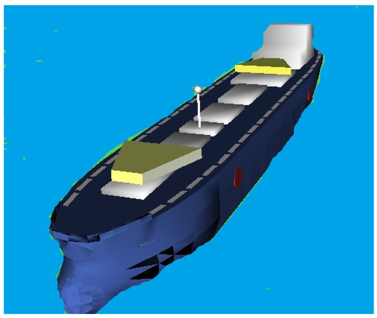 These were presented in papers describing the object Blue Lady [24,31]. The non-linear control object finally has a form represented in terms of the state variables proposed in Equations (5) and (6), where the simulation model was created in a Matlab and Simulink environment based on, among other things, the s-function. On the other hand, the ship’s hull model was created in the Simulink environment in a library called ‘Simulink 3D Animation/Virtual Reality’, as presented in Figure 3.