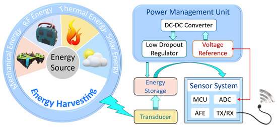 Block diagram of the wireless sensor nodes adopting EH technology.