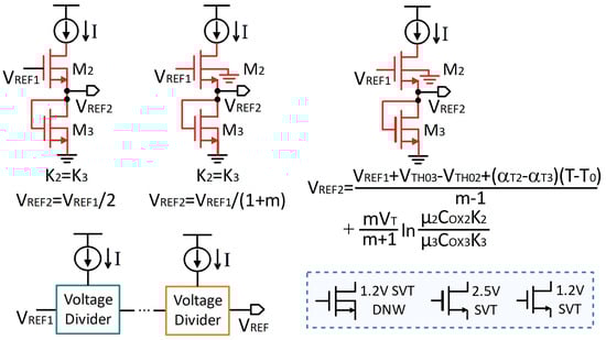 Furthermore, by substituting diode-connected transistors with different threshold voltages of varying types, different output voltages can be obtained through voltage dividers, as depicted in Figure 5.