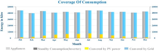 Coverage of consumption by PV for various months.