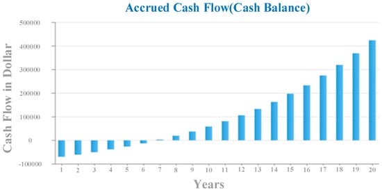 Energy inflation in Italy is predicted to reach 11.5 percent in May 2023 [35]. As shown in Figure 19, the economic analysis findings reveal that the original investment is reimbursed after 7 years; therefore, the payback time for the current system is 7 years, and this graph depicts the profit from the deployment of the current system over the following 20 years. It is worth mentioning that in our research, only capital expenditure (CapEx) associated with the initial investment necessary for PV system deployment was included.