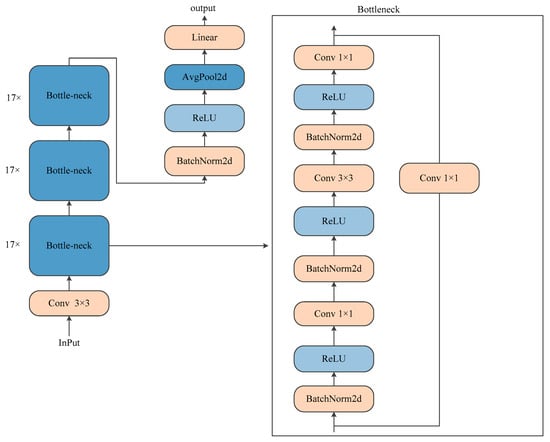 Therefore, we designed a hierarchical strategy for the ResNet164 model: freezing the parameters of the first convolutional layer and dividing the three bottleneck modules into separate layers. The structure of the model after stratification is shown in Figure 2.