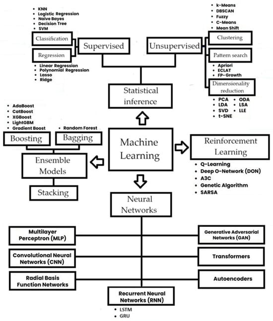 Selected ML methods used in DTs (own version based on [16,17,18,19,20,21,22,23,24,25,26,27,28,29,30,31,32,33,34,35,36,37]).