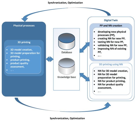 Optimization ofphysical processes using a DT with an example of 3D printing processes (PP—physical process, NN—neural network) (own concept based on previous publications [34]).