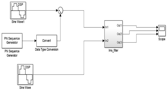Figure 1 depicts the traditional filter framework of adaptive design. x(n) and d(n) refer to the input signal and required signal, respectively. e(n) refers to the error component, which is computed by subtracting every iteration output from the required signal. For the case of adaptive filtering, the weights or filter coefficients w0, w1,w2,…wn need to be updated to achieve the required response. Hence, in this work, the LMS algorithm is used to avail updated coefficients. The adaptation rate or step-index component µ is chosen as 0.06.