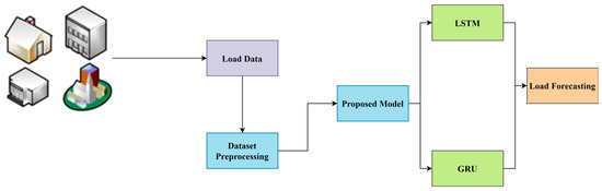 In this section, we will take a closer look at the architecture of the proposed model, breaking it down into its use of LSTM and GRU neural networks for load prediction. Our novel LSTM model incorporates an additional attention mechanism that allows the network to focus on the most relevant parts of the input sequence. This modification enhances the model’s ability to capture complex temporal dependencies in the load data, improving the accuracy of load forecasts. The GRU model is enhanced with a dynamic gating mechanism that adjusts the importance of the input features based on the current state of the model. This improvement allows the GRU model to better handle variations in the input data and enhance forecasting accuracy. The classic LSTM and GRU models do not include these advanced mechanisms, which limits their ability to effectively capture intricate temporal patterns in dynamic load forecasting. Our proposed enhancements address these limitations, resulting in more accurate and reliable predictions.