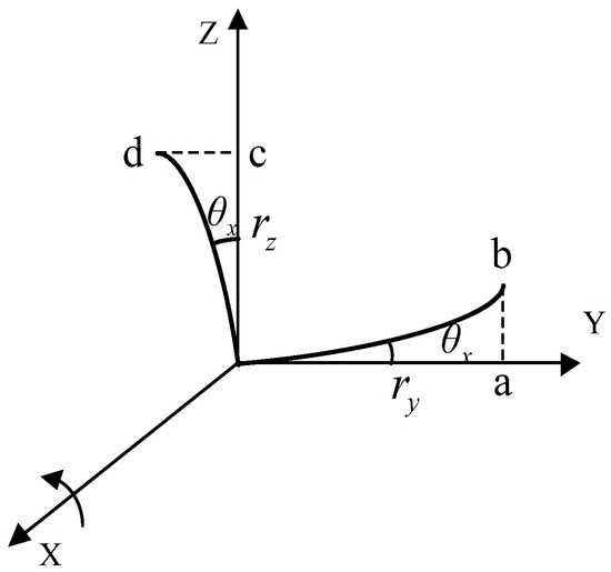 The static deformation angle is treated as a constant value. When the deformation is regarded as a linear model, the difference in angular velocity between the main and sub-IMU is expressed as follows: