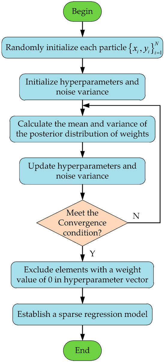 where the first term is the sum of measurement errors, and the second term is the regularization term. Figure 3 shows the flowchart of the RVM algorithm.