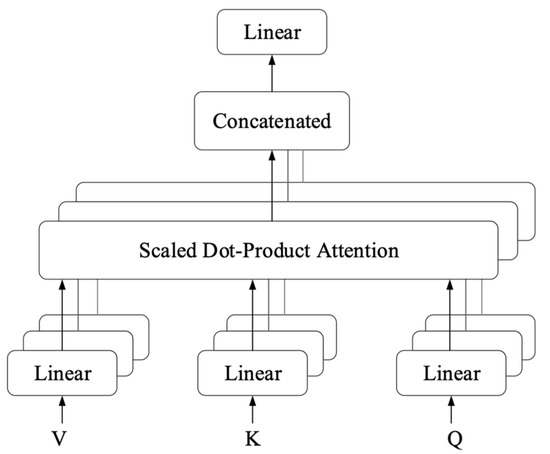 In the Transformer structure, the multi-head self-attention layer is a key component of the architecture. Its core idea is to perform multiple linear projections on the input and perform independent self-attention operations in each subspace, which helps the model focus on different positions in parallel. Figure 2 shows its structure.