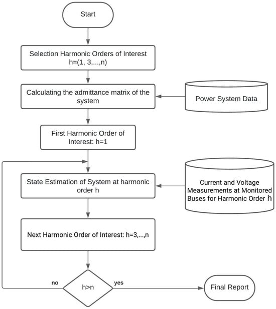In 1970, initial efforts in the field of power system state estimation by [,,] provided a fundamental framework to address these challenges, setting a benchmark for future research in HSE. The main advantage of this methodology lies in its ability to provide a comprehensive framework for system analysis, although its direct applicability to HSE was limited due to the lack of focus on harmonic distortions.