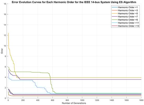 Arruda et al. [] advanced the use of ESs for harmonic distortion estimation, providing robustness and adaptability to the HSE process. However, this technique presents several parameters that need to be empirically adjusted. Thus, the selection and configuration of evolutionary parameters emerged as critical challenges for the effectiveness of this technique. A limitation of the presented methodology is that it only estimates the harmonic components of the network, assuming that the PQ meter data are synchronized and that the power flow for the entire electric power system (EPS) at the fundamental frequency is known.
