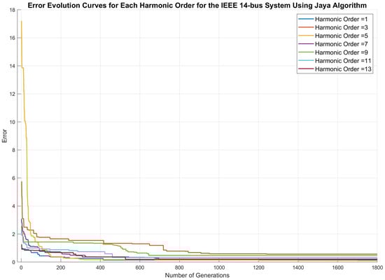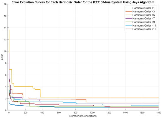 Furthermore, the Jaya algorithm identifies the best and worst individuals within the population throughout all iterations. The best individuals are those who consistently demonstrate the highest levels of fitness, effectively guiding the search toward more optimal solutions. On the other hand, the worst individuals represent the lowest levels of fitness, serving as benchmarks for the necessary improvements and adjustments in the algorithm’s search dynamics. Once the stopping criterion is met, the best solution for each harmonic order is considered the final solution for that specific harmonic order.