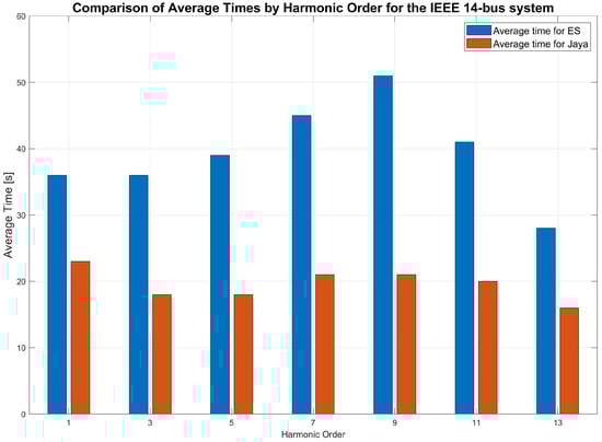 Initially, both systems were simulated using PSCAD X4 software (version 4.5.0.0) at the fundamental frequency to validate the data. Since the operating conditions at the fundamental frequency considered in this study are the same as those of the official test models, the power flow results could be validated through [,] for the IEEE 14-bus and IEEE 30-bus systems, respectively.