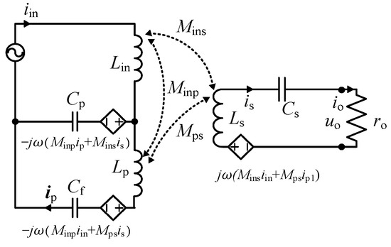 The LCC-S topology consists of a resonant network with one resonant inductor (Lin) and two resonant capacitors (Cp, Cf) on the primary side and one series resonant capacitor (Cs) on the secondary side. Kirchhoff’s current law for the IPT converter leads to the following equation [14]: