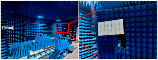 Experimental equipment for testing the far-field pattern of the designed antenna array in the microwave anechoic chamber.