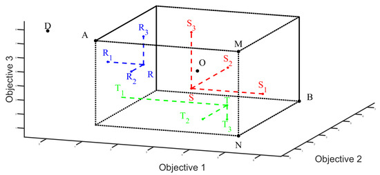 If equals , then equals , but individual R and individual A are very close. The current crowding distance operator can ensure that the previous and next individuals are dispersed as much as possible, but it cannot guarantee that adjacent individuals are dispersed. If both individuals are preserved for the next generation, the offspring’s solutions will not be uniformly dispersed.