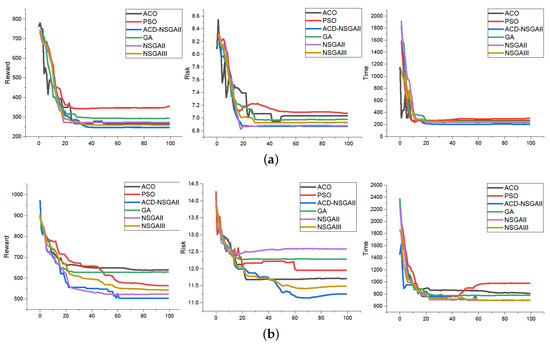 Comparison of ACD-NSGA-II and other algorithms. (a) Scenario 1, (b) Scenario 2.