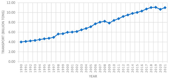 The world’s oceans, seas, and waterways serve as crucial tools for global commerce, communication, and resource exploration. However, the surge in global maritime traffic, escalating demand for offshore resources, and heightened risks associated with navigation underscore the critical need for robust maritime safety and security measures [1,2]. The volume of global seaborne trade has witnessed remarkable growth, doubling between 1990 and 2021, with transported goods increasing from around 4 billion tons to an estimated 11 billion tons [3]. This surge underscores the pivotal role of maritime transportation in global trade, as shown in Figure 1. Effective maritime object detection and tracking systems are necessary to ensure safe vessel passage and coastal area protection.