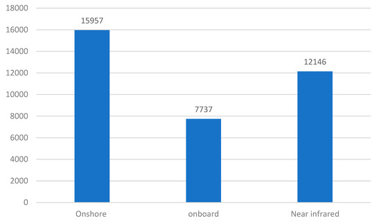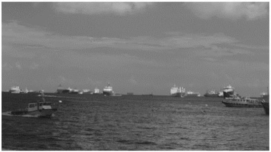 The Singapore Maritime Dataset (SMD) is a comprehensive collection of video data collected using Canon 70D cameras positioned in the vicinity of Singapore’s waters [4]. The distribution of videos and frames captured through these videos, including onshore, onboard, and near-infrared environments, are shown in Figure 3 and Figure 4. This dataset offers valuable resources for various applications and research endeavors. Here are the key features of the SMD: (1) All videos in the dataset are in high-definition, using a resolution of 1080 × 1920 pixels. (2) The SMD is divided into three distinct parts, each offering unique insights and perspectives. Sample onshore and onboard pictures from the dataset are provided in Figure 5 and Figure 6, respectively.